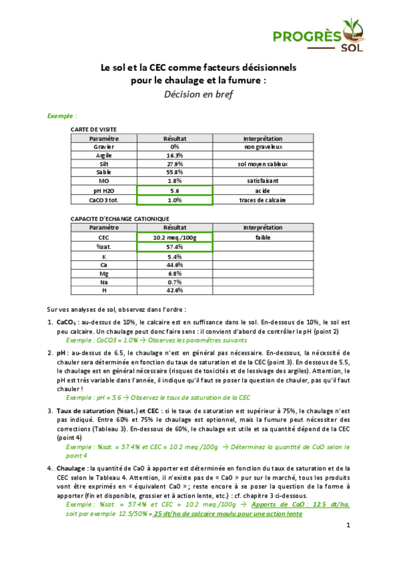 Le sol et la CEC comme facteurs décisionnels pour le chaulage et la fumure